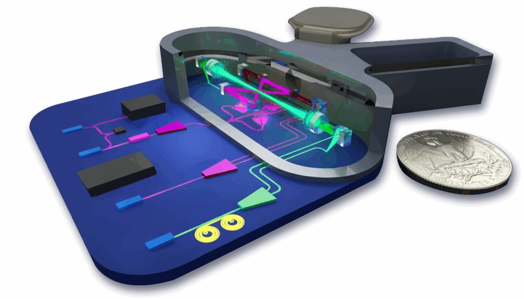 Quantum inertial sensing units rely on complex photonic systems to measure gravity, acceleration, and rotation. Chip-scale photonics allow these systems to shrink dramatically in size and cost, making them practical for assured navigation in GPS-denied environments. Infleqtion’s silicon photonics roadmap includes photonic-integrated circuit (PIC)-based inertial sensors that will set new standards in ruggedness and deployability.
